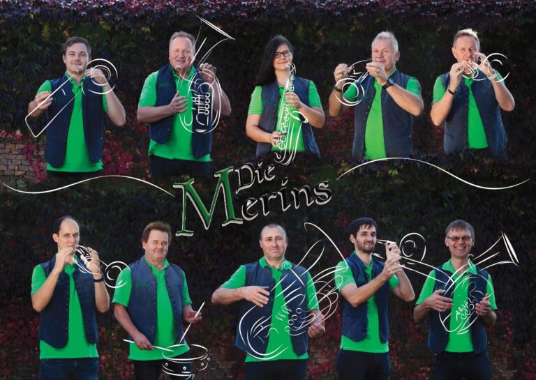 Die zehnköpfige Bläserformation „Die Merins“, gegründet 2009 in Straden, begeistert mit einem vielseitigen Repertoire von traditioneller Blasmusik bis hin zu modernen Arrangements. Mit viel Erfahrung und musikalischer Leidenschaft sorgen sie bei Festen, Früh- und Dämmerschoppen sowie bei Firmen- und Privatfeiern für die passende Stimmung. Ihr größtes Anliegen ist es, die Freude an der Musik spürbar zu machen und das Publikum zu begeistern.